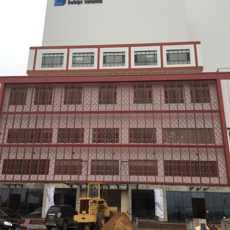 現代的辦公大樓,基本上都是采用玻璃幕墻,玻璃外墻給辦公大廈添加了幾分亮度,陽光在不同厚度的玻璃折射下,讓大樓內部不會因為強烈的陽光顯得刺眼。但是僅僅靠玻璃幕墻,很多時候會讓建筑顯得過于單調,尤其是豎狀的玻璃幕墻。為了解決這種突兀的問題,圭江建材設計師給外墻加裝了一套鋁窗花。 |