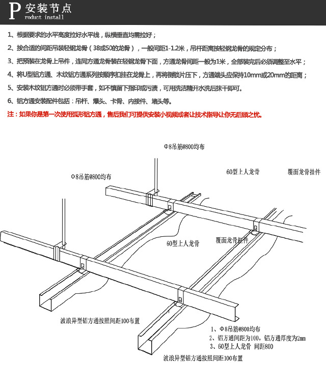 2、造型鋁方通產品便于吊頂上部空隙通風排煙;有足夠的上部空間進行設備檢修;