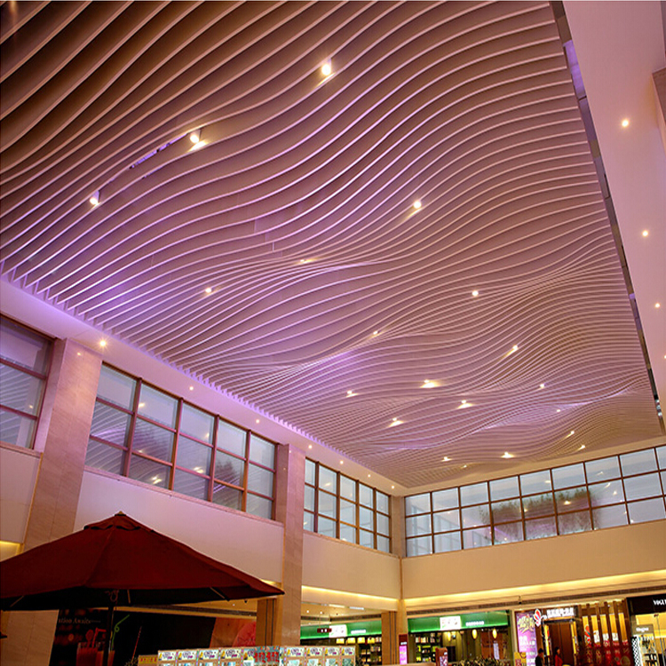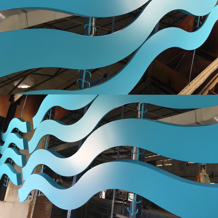 弧形防火鋁方通、波浪型鋁方通是一種新型的修建裝潢材料。外型雅觀,深受人們愛好?;⌒武X方通的制作工藝是:由型材鋁方通經由過程拉彎機拉出所需要的弧度,弧度能夠到達100度,弧形的偏向能夠是同向,也能夠是反向。 |