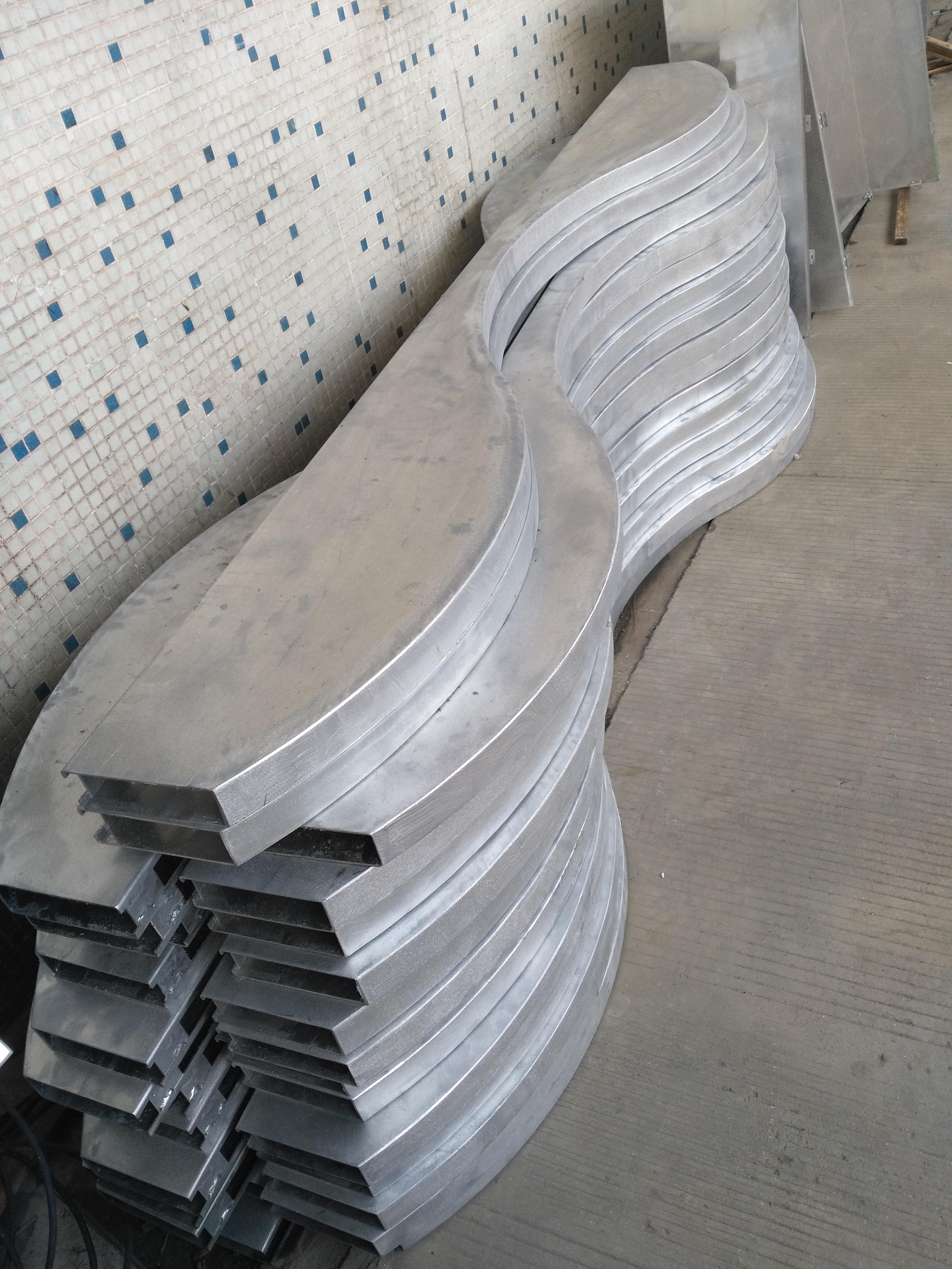 弧形防火鋁方通、波浪型鋁方通是一種新型的修建裝潢材料。外型雅觀,深受人們愛好。弧形鋁方通的制作工藝是:由型材鋁方通經由過程拉彎機拉出所需要的弧度,弧度能夠到達100度,弧形的偏向能夠是同向,也能夠是反向。