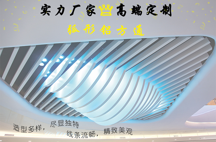 弧形鋁方通為什么會這么受歡迎?首先因為弧形鋁方通方案靈活多變,不管是弧形,還是鋁方通形狀,涂層顏色上來說,都可以自主設計,設計師可廣發思維,在產品工藝不受限制的前提下,設計師的方案肯定是千變萬化的,而每一種弧形鋁方通,都是少有的,所以不管用在哪一種場合中裝飾使用,每個弧形鋁方通工程呈現出來的效果都是少有的,區別去其他任何場合,裝飾效果自然是引人注目的。 |