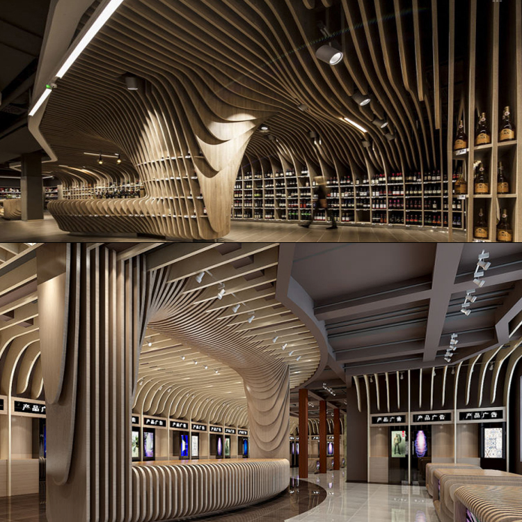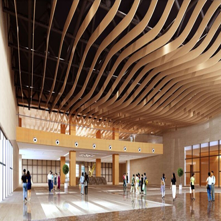 弧形鋁方通吊頂采用我們廣東圭江幕墻裝飾材料有限公司木紋弧形鋁方通裝飾材料可顯示出整個效果檔次高端、大氣、新潮大膽地追逐個性化色彩,不拘雅俗地感受時尚,大都市的空間總是用家具與飾物來引領潮流,總令人眼睛為之一亮。選擇咱們善禾建材鋁材料是對的,我們可以提供完美的設計,可以打造出你意想不到的完美效果