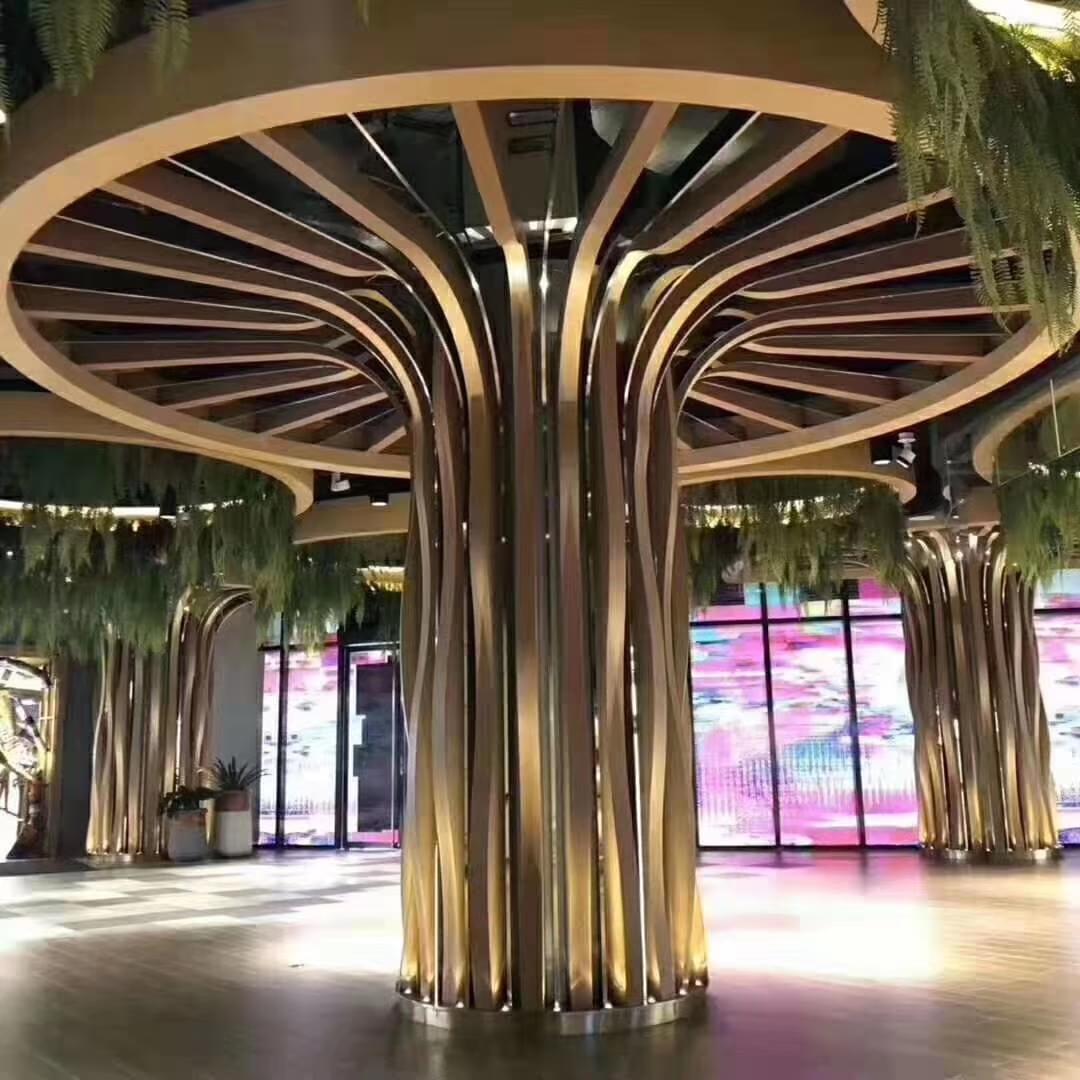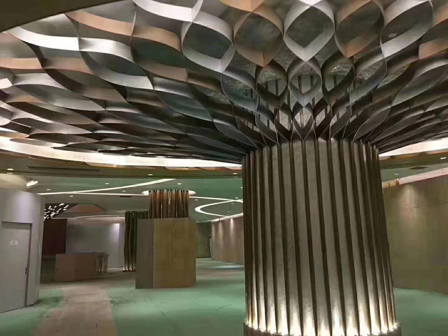 弧形鋁方通 鋁樹天花由鋁板按要求開料再燒焊成弧形。美觀的外形,配予不同的顏色,能組合出不同裝飾風格,塑造出不同的視覺效果。